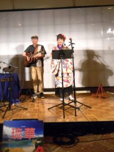 三線・唄を「琉華」のデュオが沖縄民謡・沖縄J-popsを中心に会場を盛り上げてくれました。